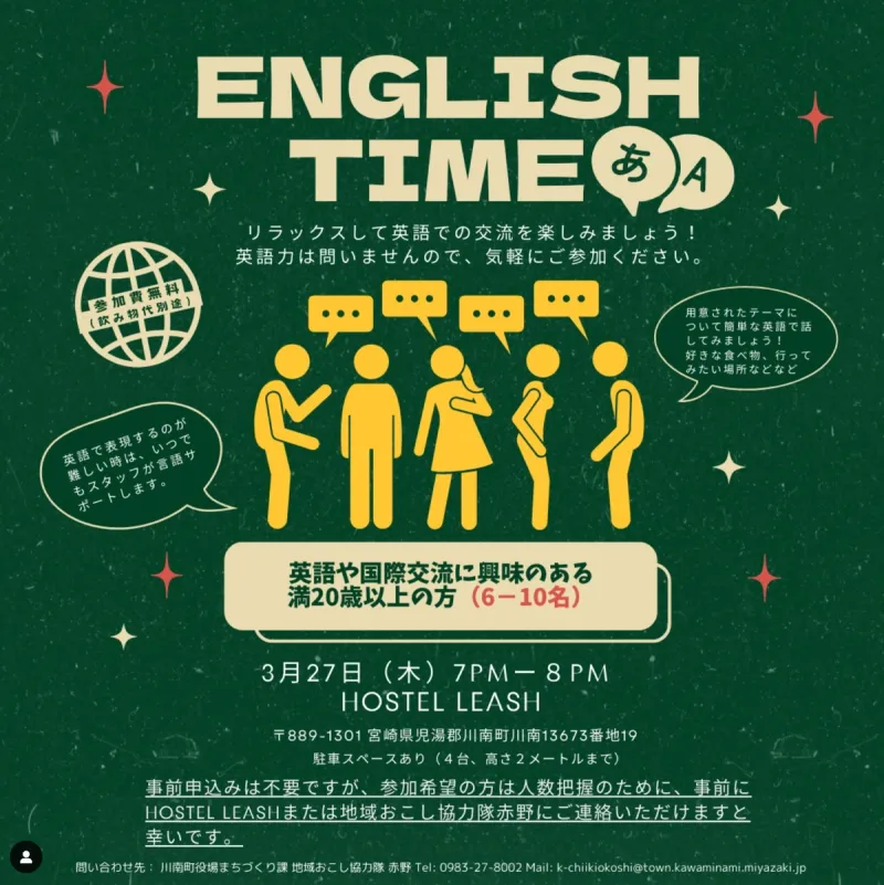開拓のまち「川南合衆国」と呼ばれる川南町は自分らしい暮らしを求める移住者と、その移住者を受け入れてくれるあたたかいハートを持った地域の方たちが築いてきたまちです。HOSTEL LEASHに滞在してこのフロンティアスピリット溢れる川南町を食と地域の人たちとの交流を通じて感じてみてください。